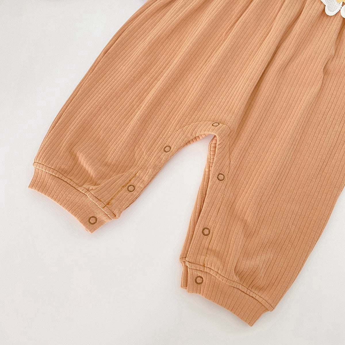 This Baby Girl Doll Neck Rompers is a stylish and comfortable 1-piece design. It features a 3D flower patched pattern, which adds texture and unique detail. Made of durable material, the Baby Girl Doll Neck Rompers is the perfect choice for an active baby girl.