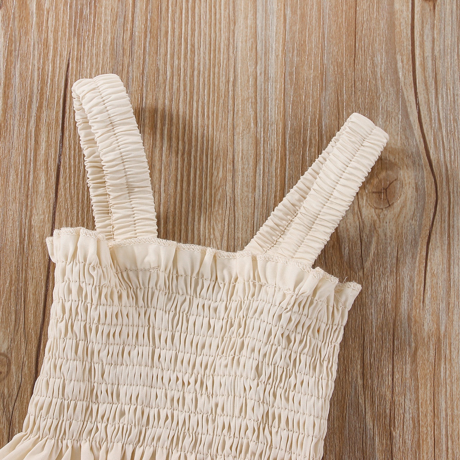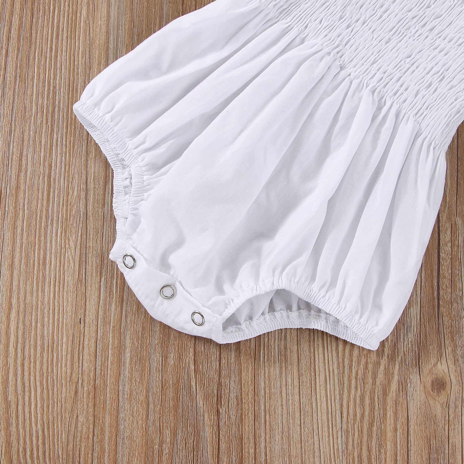 Baby Girls Solid Color Sleeveless Summer Shirred Bodysuit Onesies &