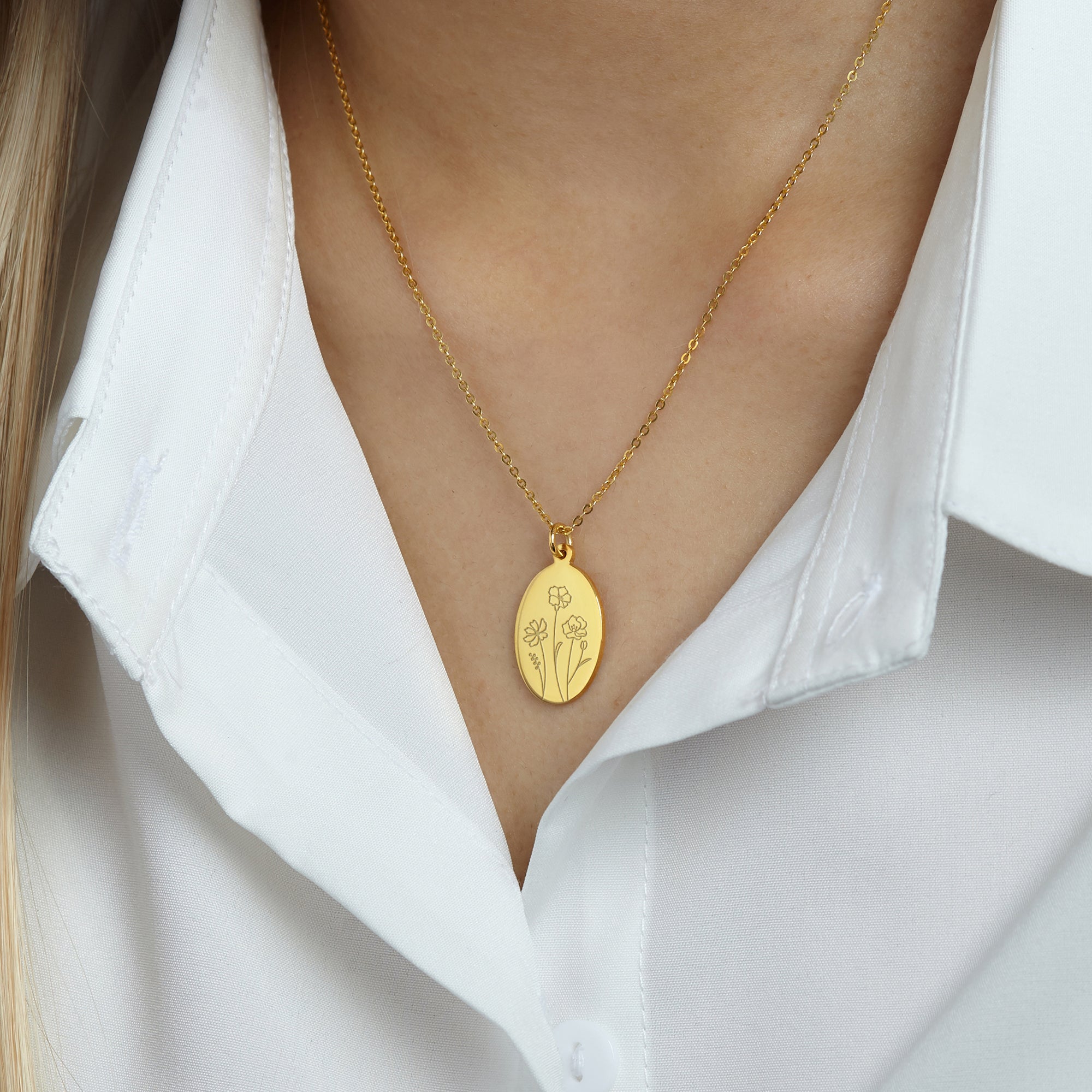 Made as a family gift, the birth flowers on the oval pendant represent those you love. This necklace can be customized up to 5 birth flowers, make it a perfect gift for your mom/grandma on Christmas, mother's day or any special occasion.