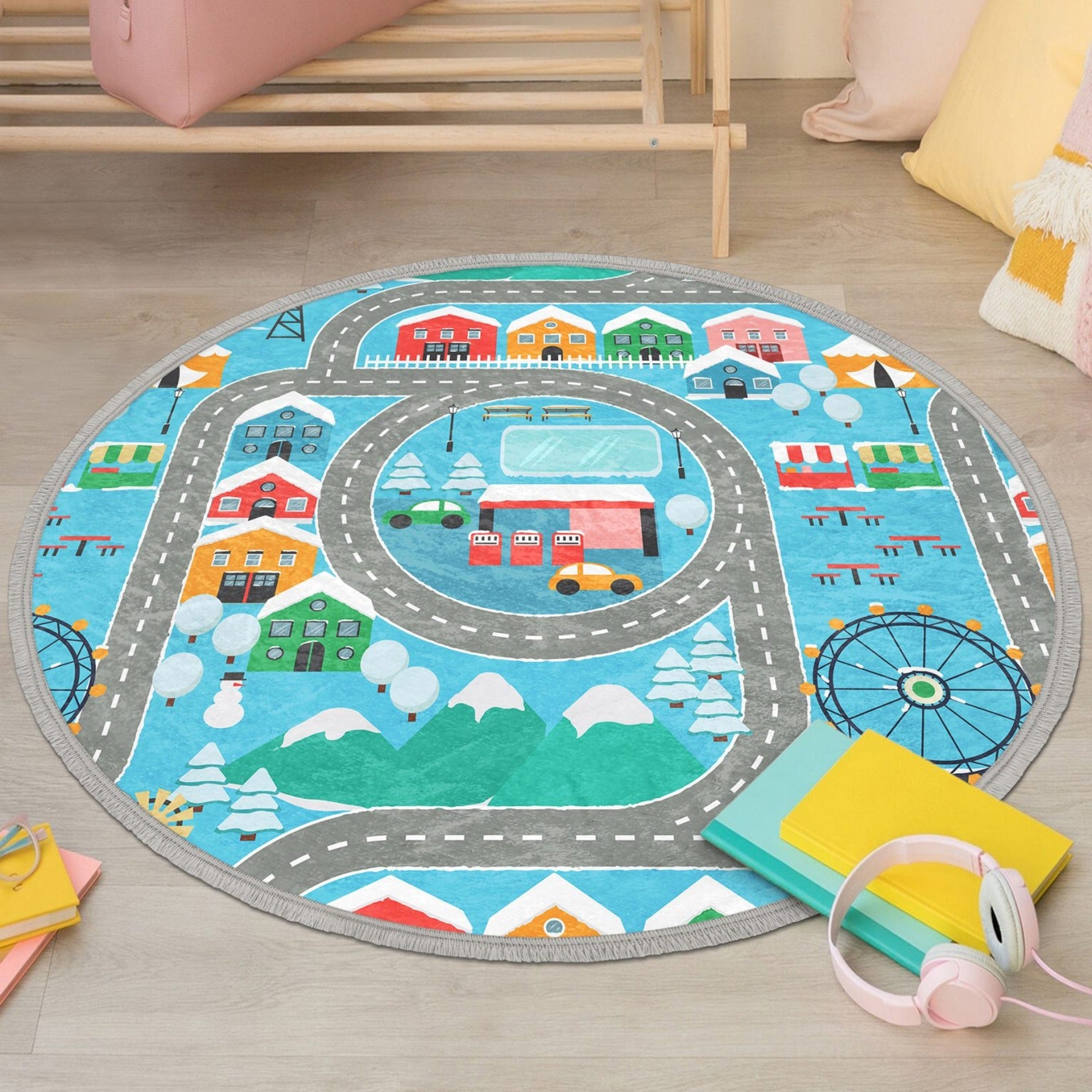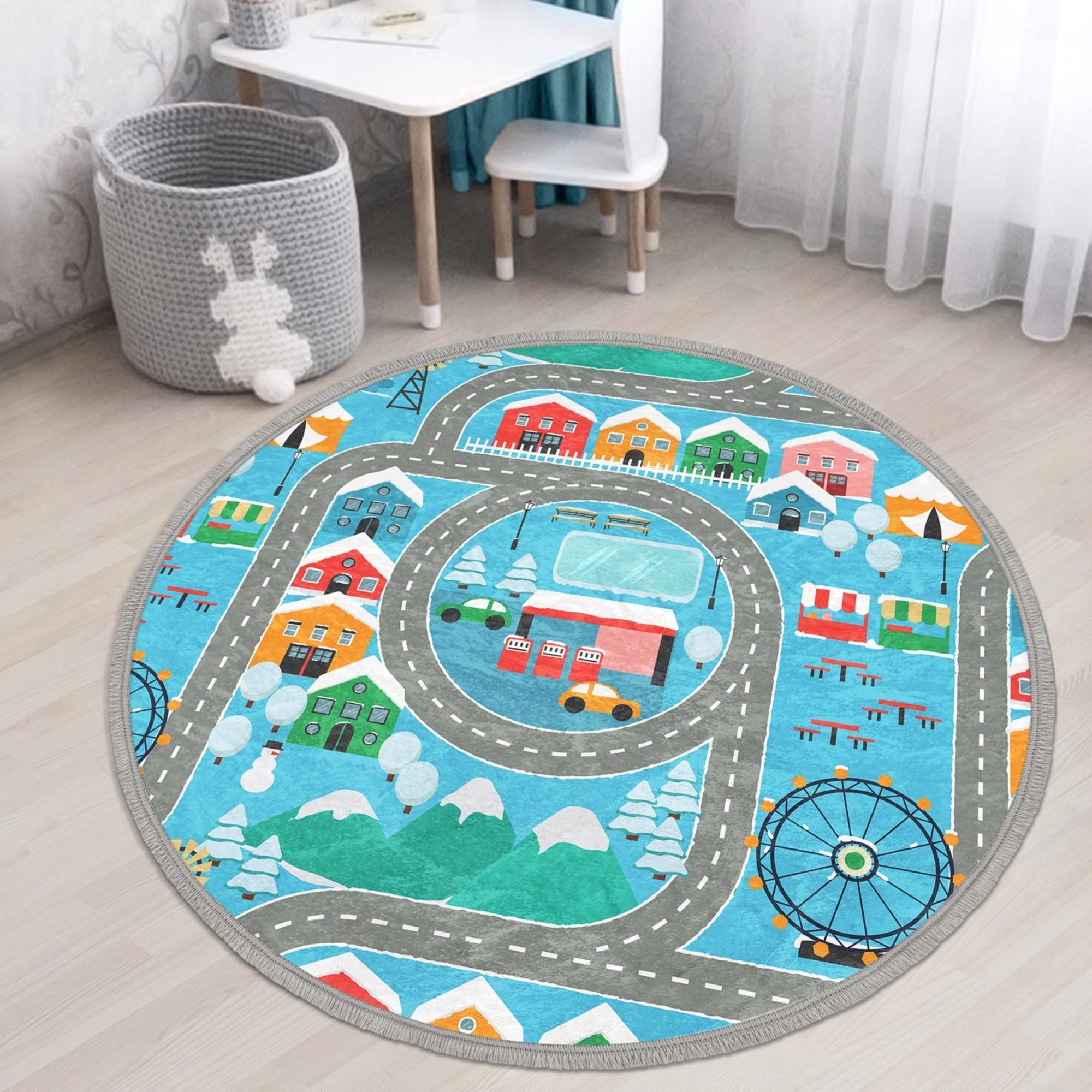 Cute Nursery Room Round Rug, Decorative Kids Room Nonslip Carpet, Playroom Circle Rug