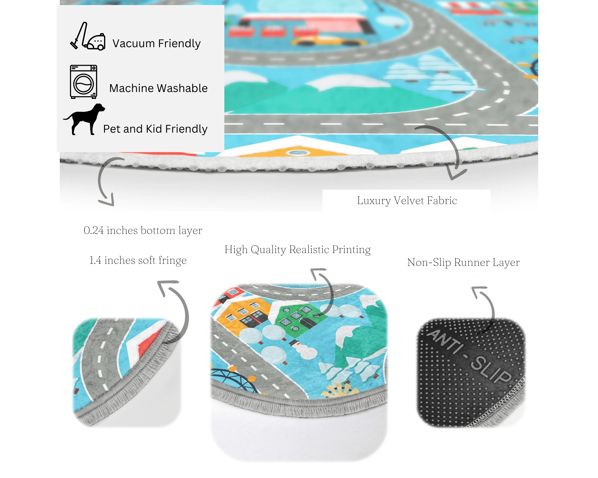 Cute Nursery Room Round Rug, Decorative Kids Room Nonslip Carpet,