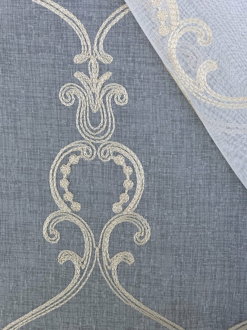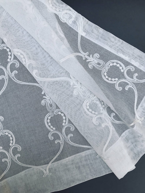- Delicate pattern embroidered on white sheer, Give your room a luxurious look. Embroidered patterns available in White or Gold color.