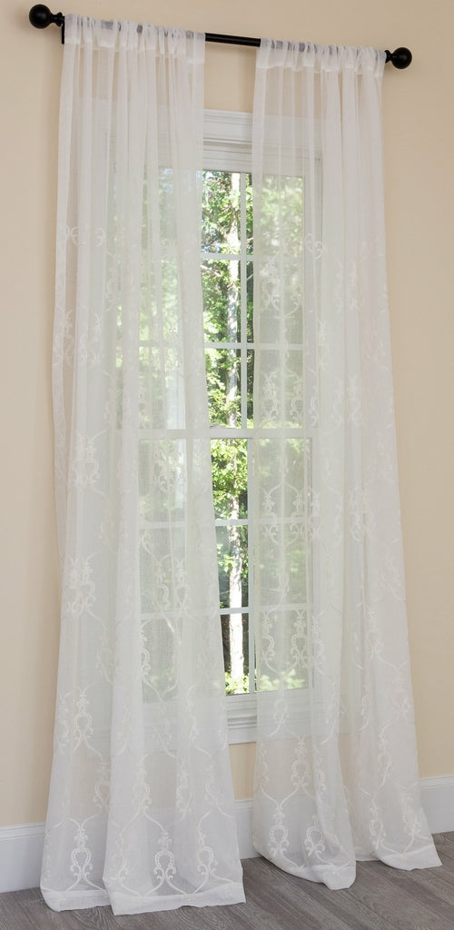 Features an elegant embroidered pattern on light weight sheer. Add an elegant and decorative touch to any window and room. This beautiful curtain adds a refreshing charm to your window and lets in beautiful diffused light.