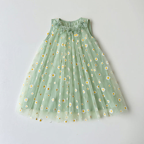 Summer Arrival Flowers Pattern Sleeveless Tulle Dress for Stylish