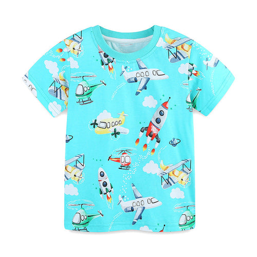 Summer Boys’ Rockets and Plane Cartoon Pattern T-shirt in European and