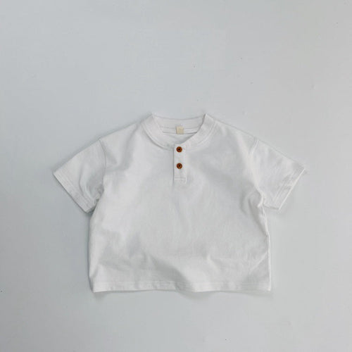 Summer Kids Unisex Minimalist and Versatile Short Sleeves V Neck